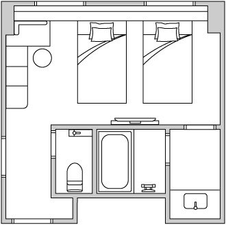 ファミリーやグループで使い勝手の良い、隣接したツインルームとシングルルームを、お部屋内にある内ドアでつないだコネクティングルームです。